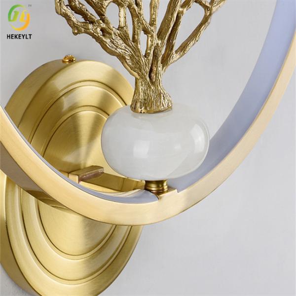 New Chinese style creative full copper wall lamp bedroom bedside lamp living room LED modern minimalist bedside artistic personality wall lamp