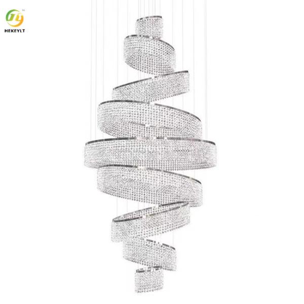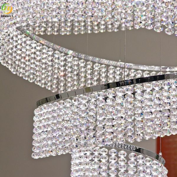 Villa duplex stairwell round postmodern grand chandelier living room crystal silver lighting Hotel engineering lighting