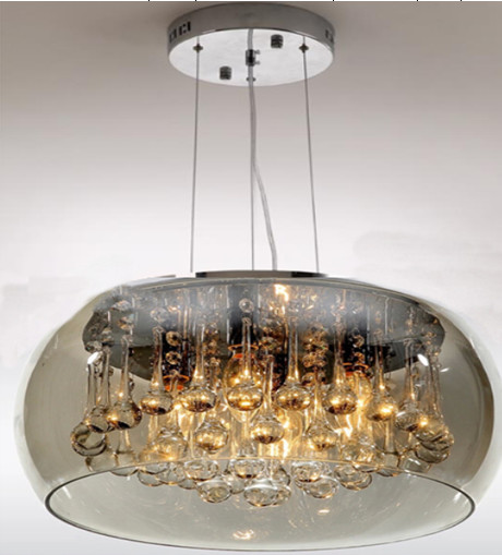 The material of this pendant light is hardware,crystal and glass.There are tree kinds of pendant light,such as,D28cm,D40cm,D50CM.The color of this pendant light is chrome.The shape of this lamp is simple and modern.The crystal part is made of clear crystal,which is full of brilliance.It adopts hardware ceiling plate,which is easy to clean,stylish and beautiful,anti-corrosion and corrosion-resisitant.Crystal with glass lampshade, like the stars in the night sky, energy saving and soft, beautiful and durable.