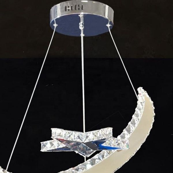 This modern crystal round ceiling light luxury design style is very creative,it add the moon and sun shape.The size of this light we have two sizes and the color is clear.The light source type is LED and main material is Stainless steel and crystal.If you want to more size, we can custom the size you want.if you want to know about this light,please contact me freely!
