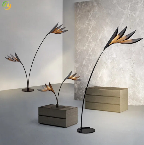 Modern Simple Living Room table Lamp Floor Lamp Iron Villa Flamingo Leaf Shape Images |