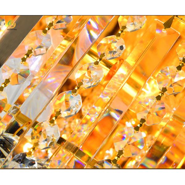 This is a round golden crystal ceiling lamp, made of metal and crystal as the main materials, LED light source type, supports dimming, the light temperature is comfortable, and it is suitable for a variety of scenarios.