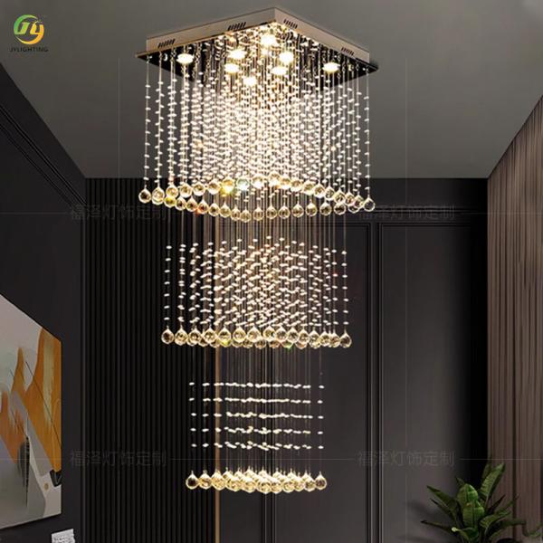 JYLIGHTING Living Room square Crystal Large Chandelier Home Staircase Crystal Chandelier Hotel Villa Modern Long LED Ceiling Light Images |