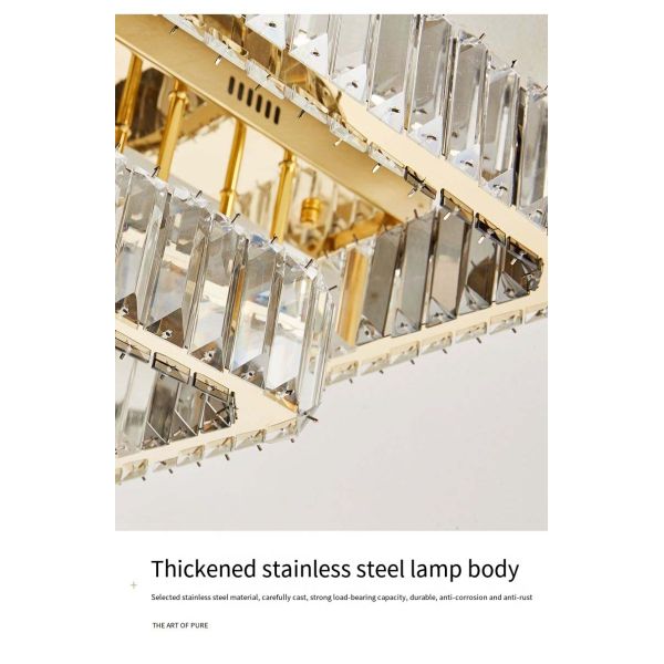 1:Multi-layer crystal design: Each layer of crystal is made of high-quality K9 crystal, which is finely cut to present a dazzling light and elegant light and shadow effect. Whether it is day or night, the light refracted through the crystal can bring different levels of visual enjoyment to the interior space.