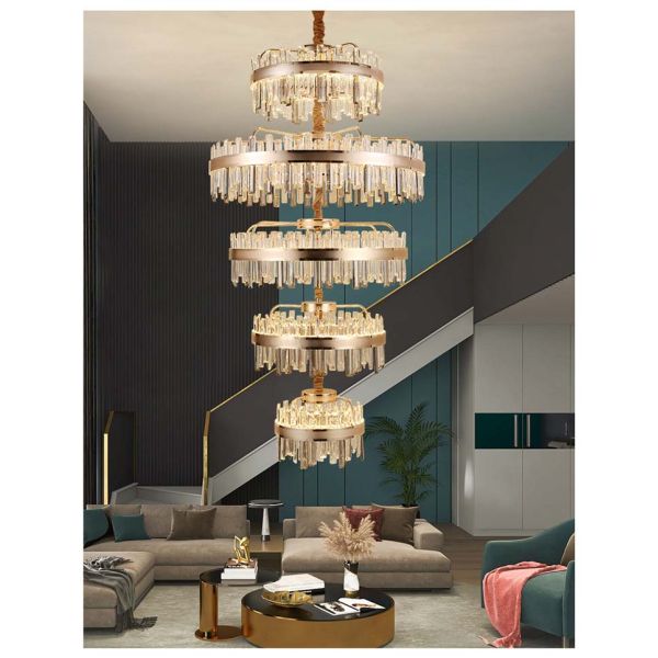 This large crystal chandelier has become a shining star in modern homes and commercial spaces with its exquisite crystal decoration and grand design style. Each crystal has been carefully cut to reflect rich light, making the chandelier add infinite charm to the interior the moment it is lit.