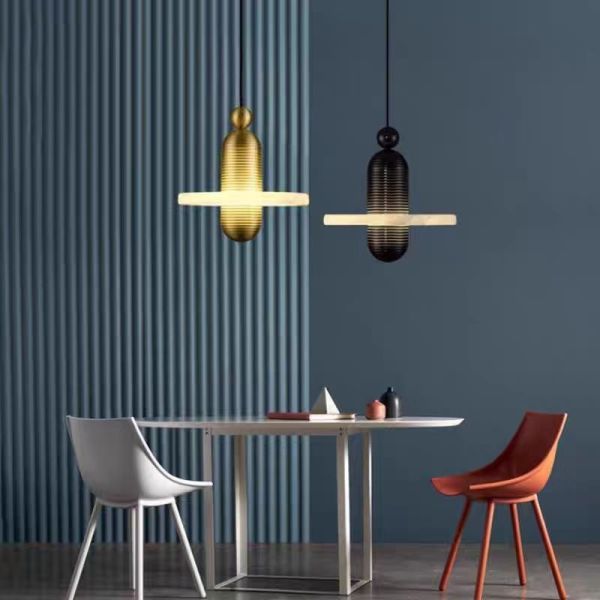 The main material of this pendant light is aluminum and marble. There are two colors for choice, black and gold color.It is very suitable for dining room, bedroom and living room.When the light is on, the whole room is full of light, bright and beautiful.